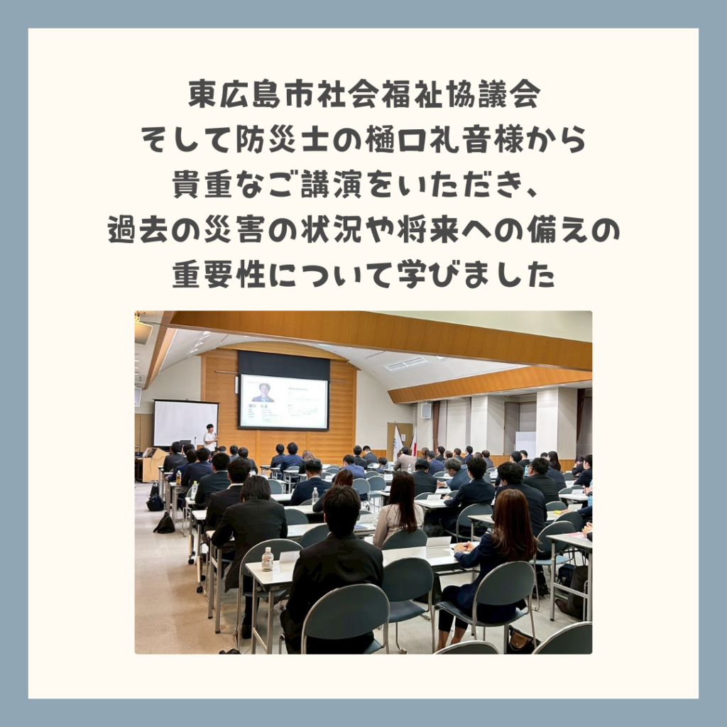 当日は、東広島市社会福祉協議会様、防災士の樋口礼音様にご講演いただき、