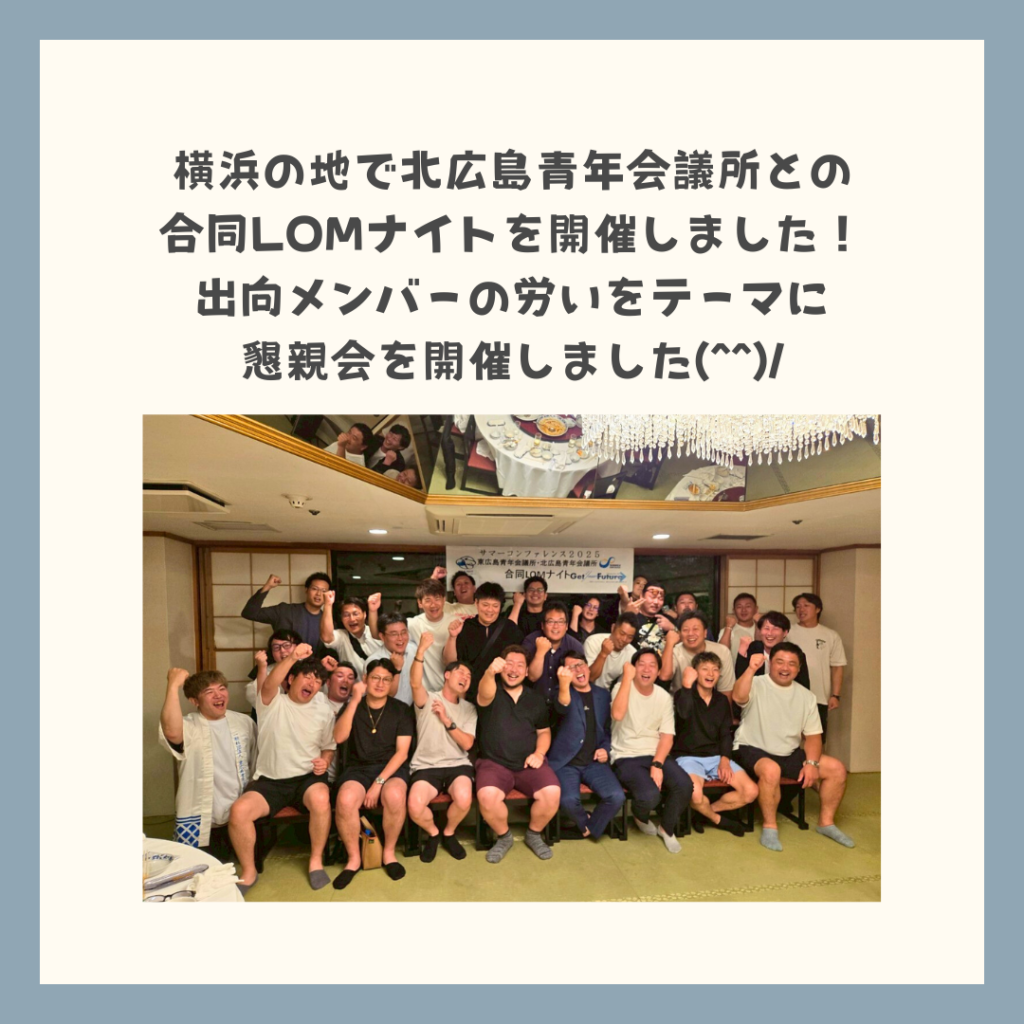 7月19日(土)の夜は、東広島青年会議所と姉妹LOMである北広島青年会議所との合同LOMナイトを開催。